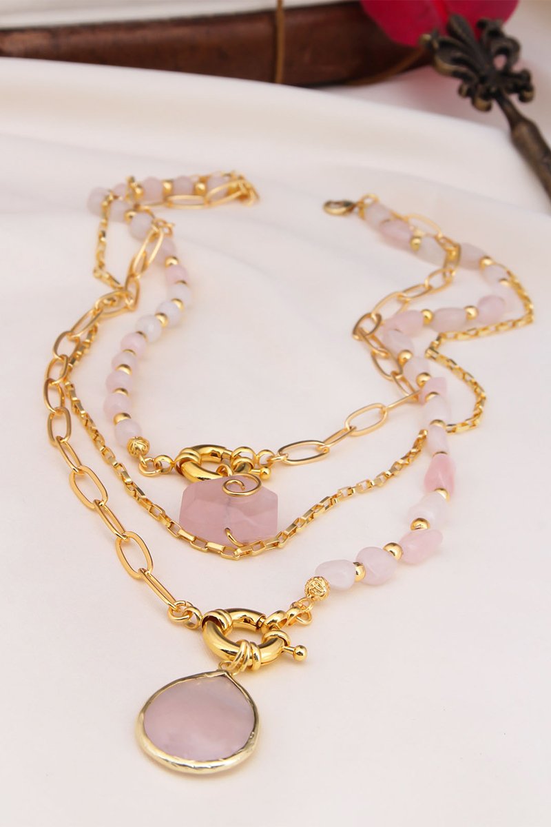 Collana multifilo con quarzo.