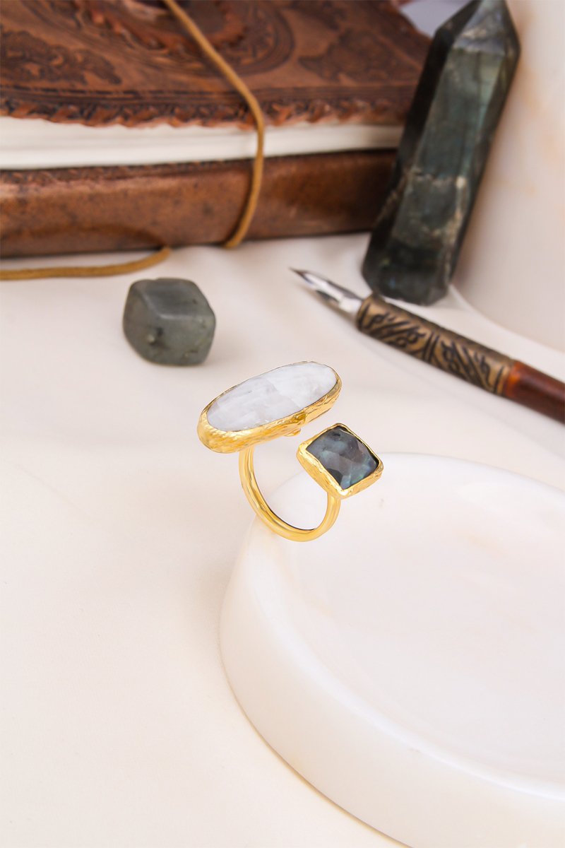 Anello in labradorite e pietra di luna.