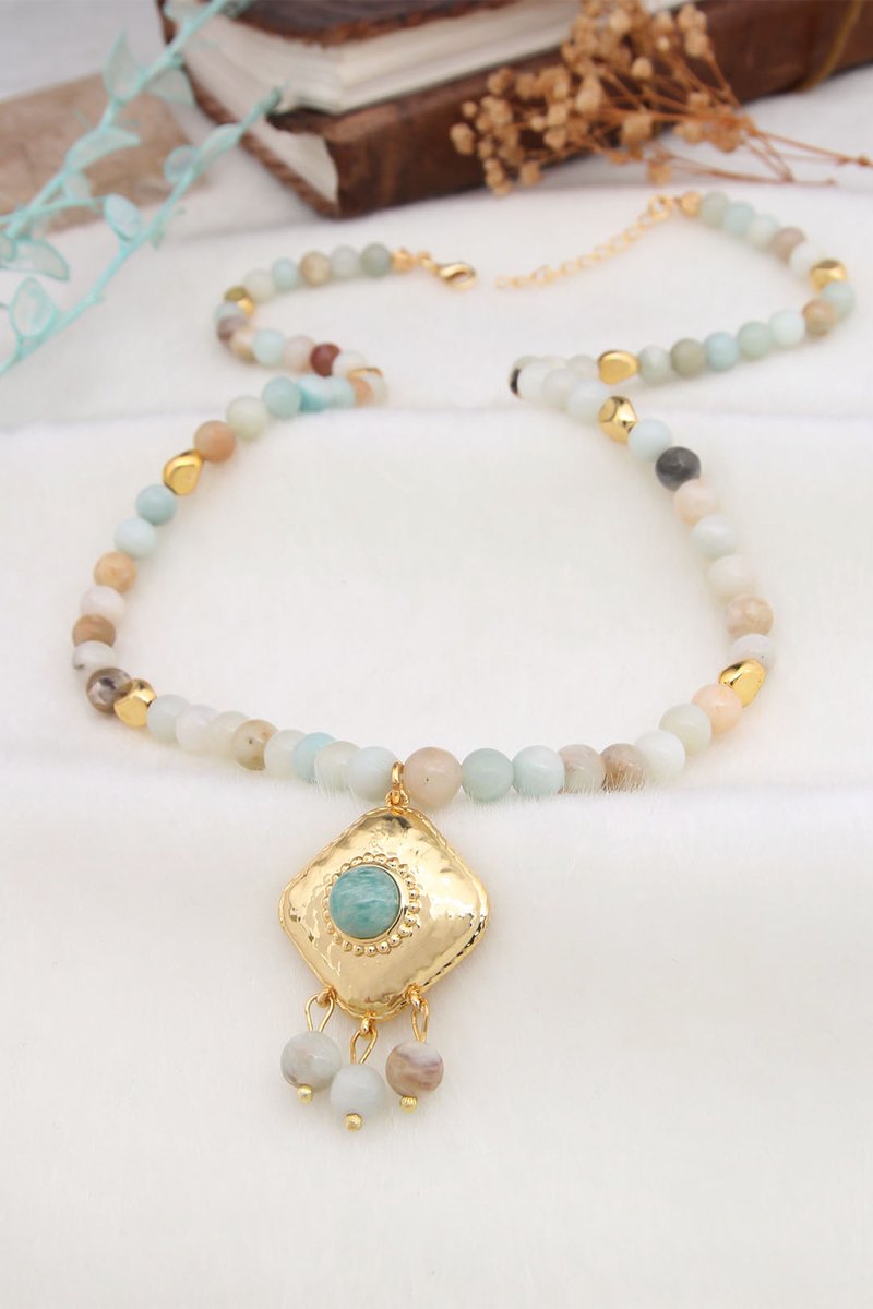 Collana - Placcato oro giallo e amazzoniti