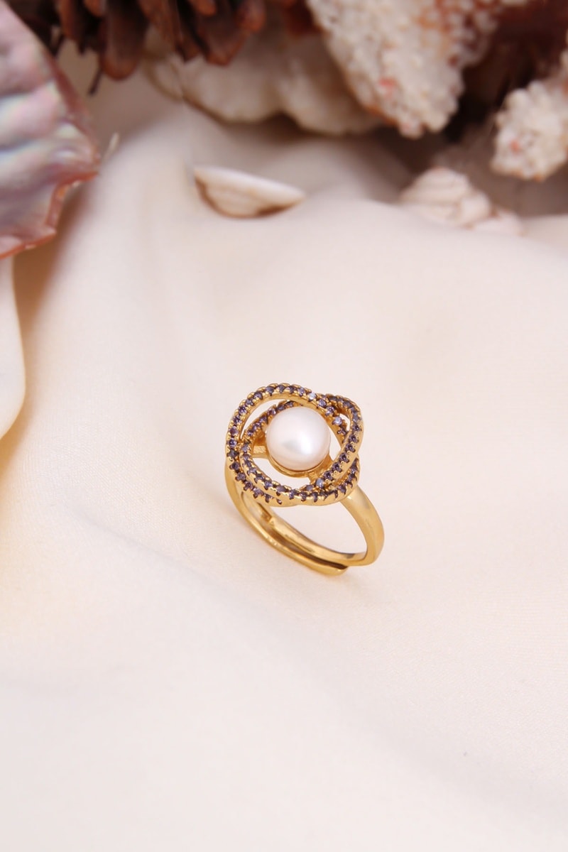 Anello regolabile con zirconi e una perla d'imitazione.