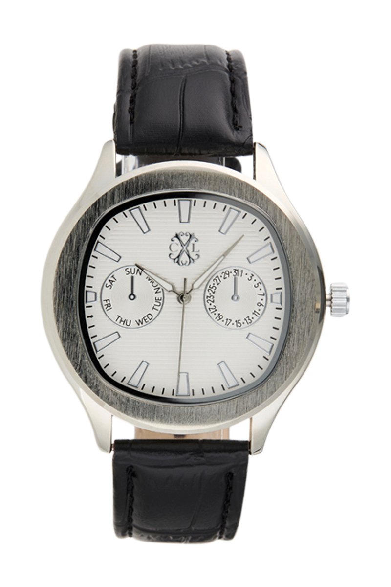 Orologio al quarzo in pelle sintetica - Nero e argentato