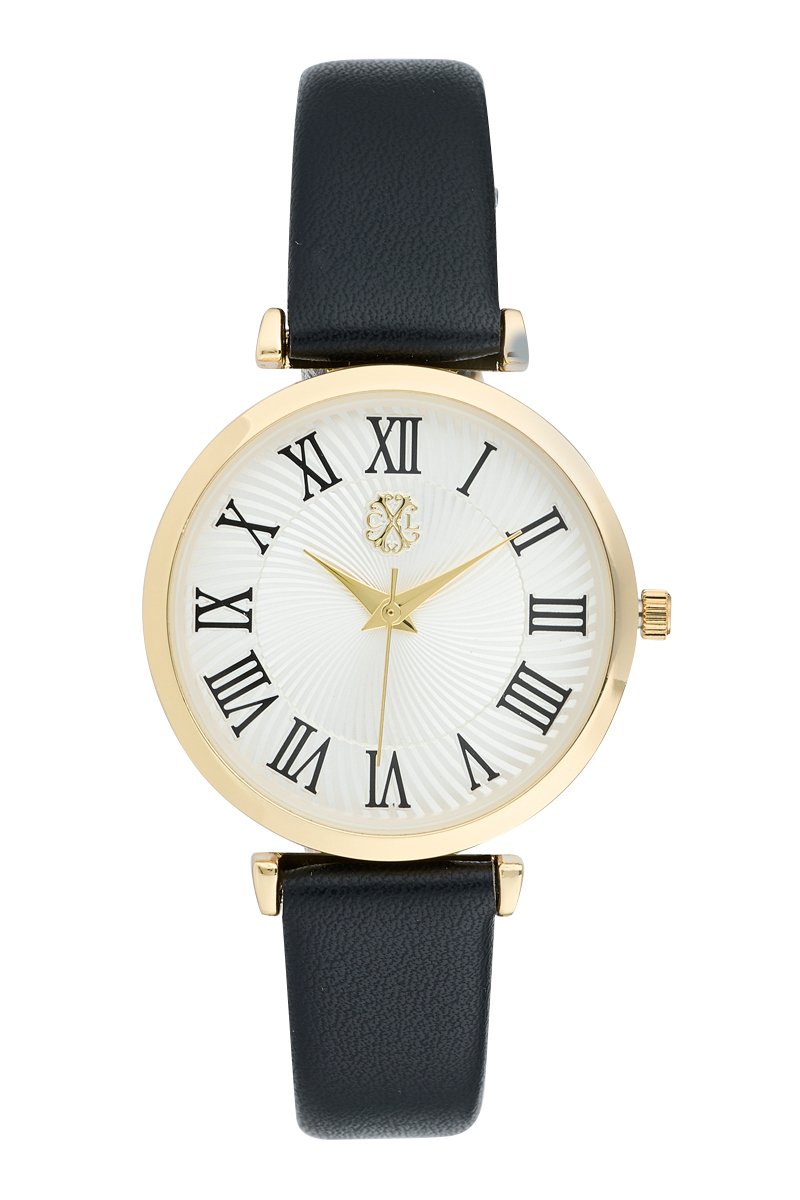 Orologio al quarzo in pelle sintetica - Nero e dorato