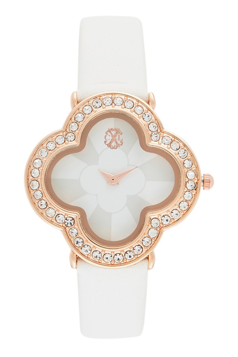 Orologio al quarzo in pelle sintetica - Bianco e dorato rosa