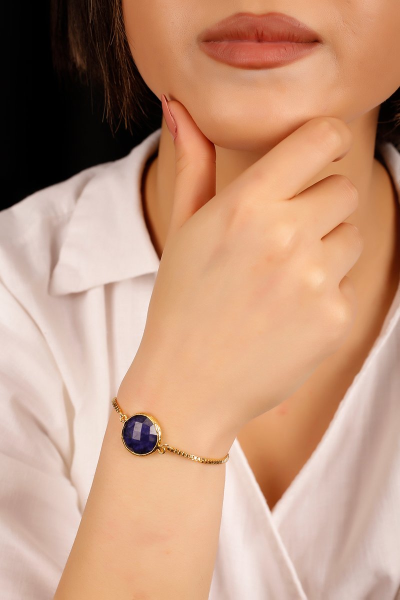 Bracciale laminato oro fino giallo con uno zaffiro.