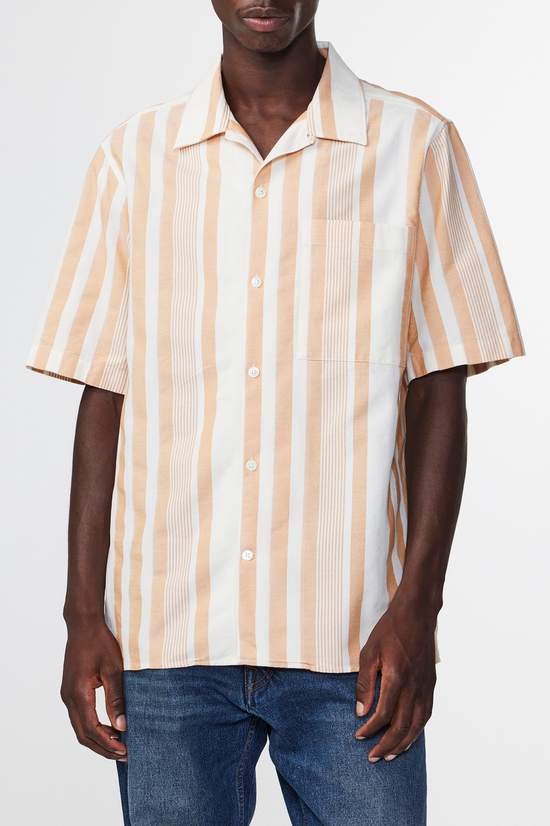Camicia in cotone bio Julio - Marrone e bianco