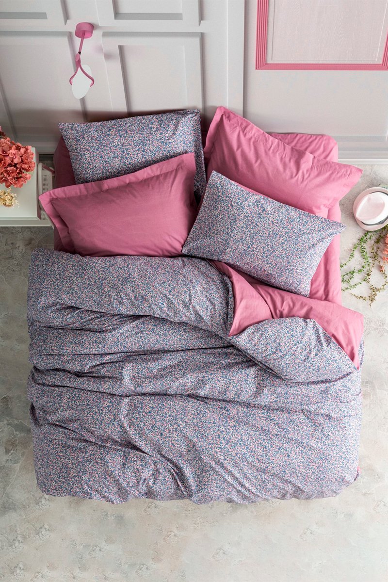 Parure copripiumino in cotone 57 fili/cm² Penny - Grigio e rosa