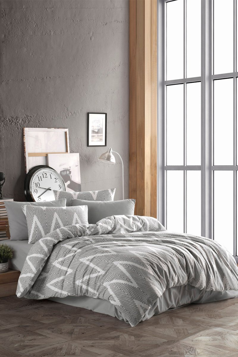 Parure copripiumino 47 fili/cm² Olivia - Grigio e bianco