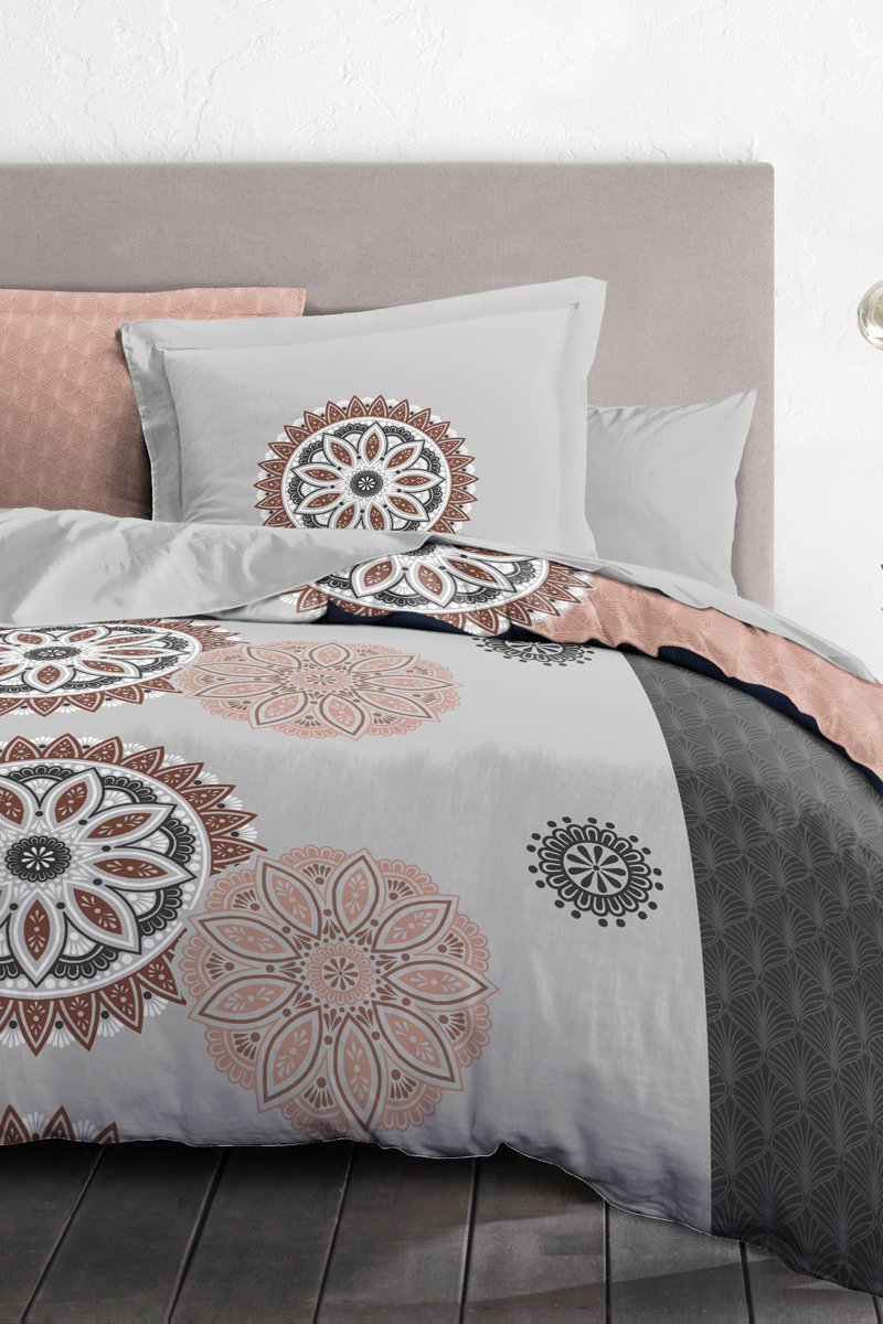 Parure copripiumino in cotone 57 fili/cm² Yucatan - Rosa antico e bianco