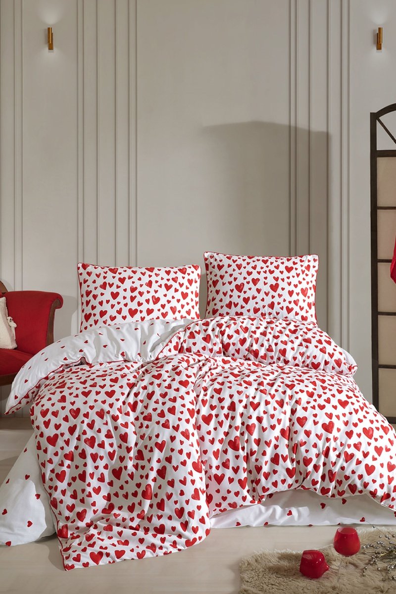 Copripiumino in cotone 57 fili/cm² Amour - Rosso e bianco