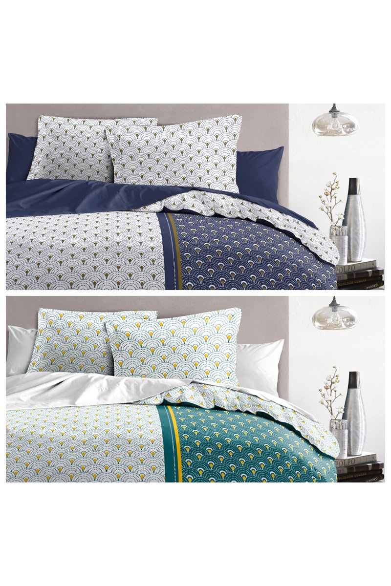 2 parure copripiumino in cotone 57 fili/cm² Rainbow - Verde e blu