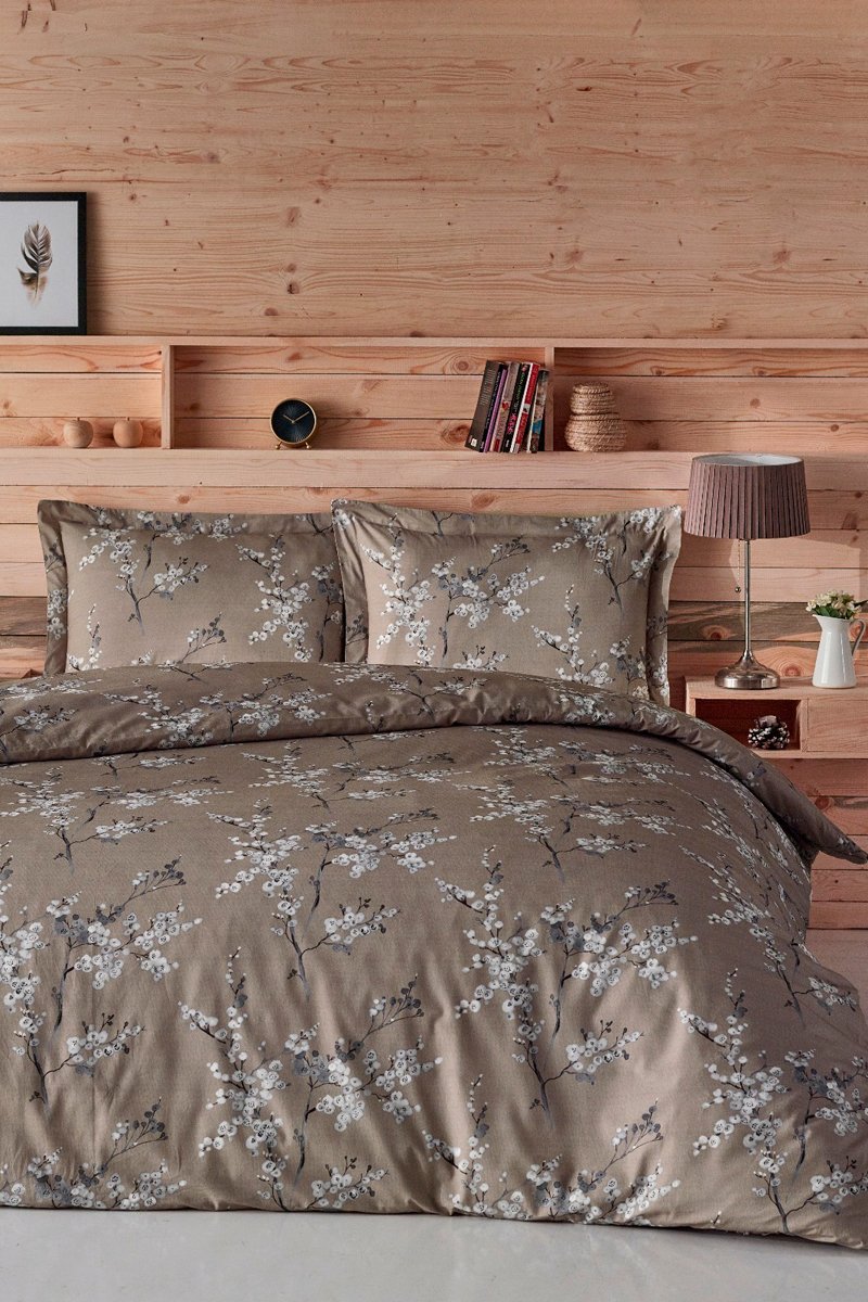 Parure copripiumino in cotone 57 fili/cm² Chicory - Marrone e bianco