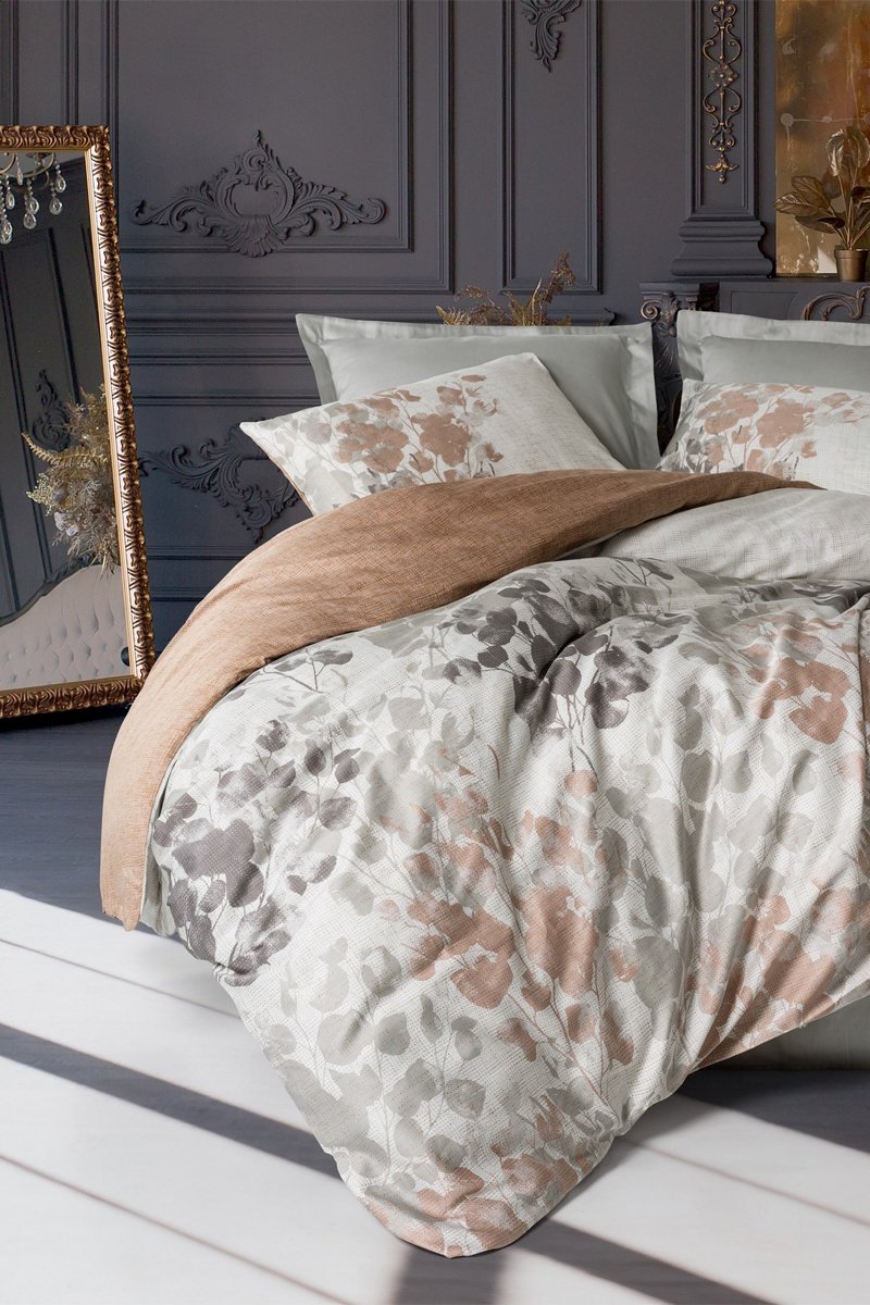 Parure copripiumino in raso di cotone 82 fili/cm² Blatt - Grigio e marrone