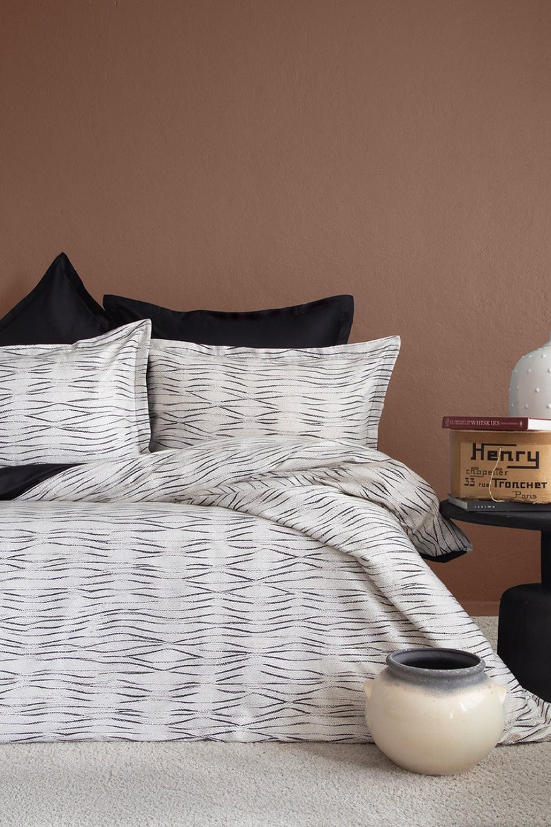 Parure copripiumino in raso di cotone Galaxy 83 fili/cm² - Grigio e nero