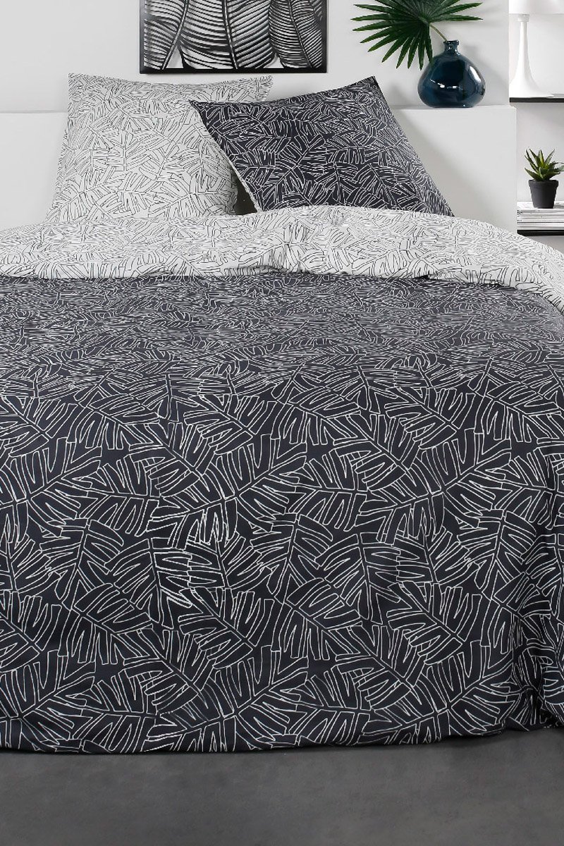 Parure copripiumino in cotone 57 fili/cm² Sunshine - Nero e bianco