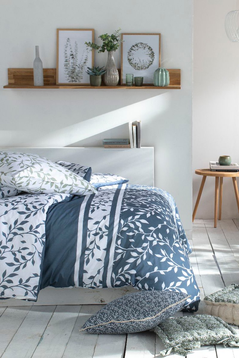 Parure copripiumino in cotone Flower Garden - Blu e bianco