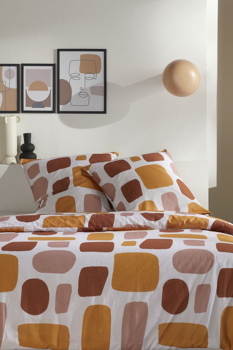 Parure copripiumino in cotone fili/cm² Retro mood - Bianco e arancione