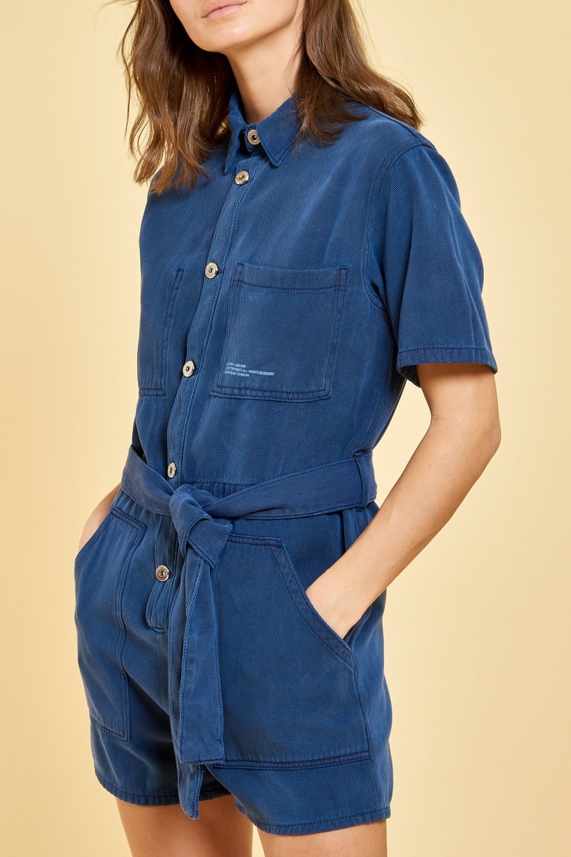 Tuta corta in jeans Louna - Blu