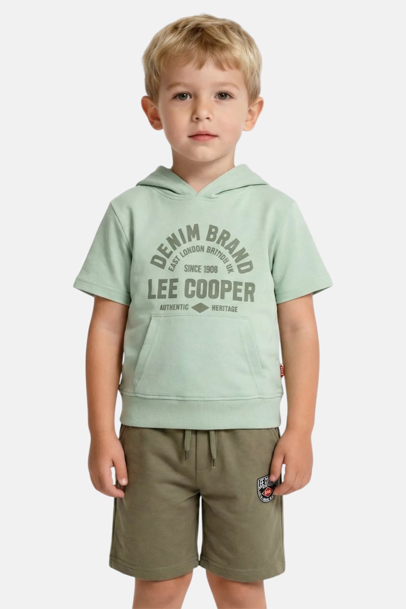 T-shirt con cappuccio e shorts - Kaki