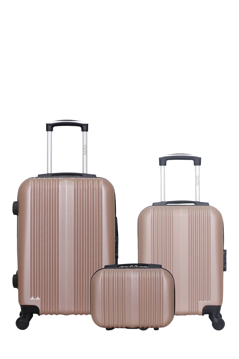 Set 2 valigie e beauty-case Lipari - (XXS/S/K) - 46/55/23 cm - Dorato rosa