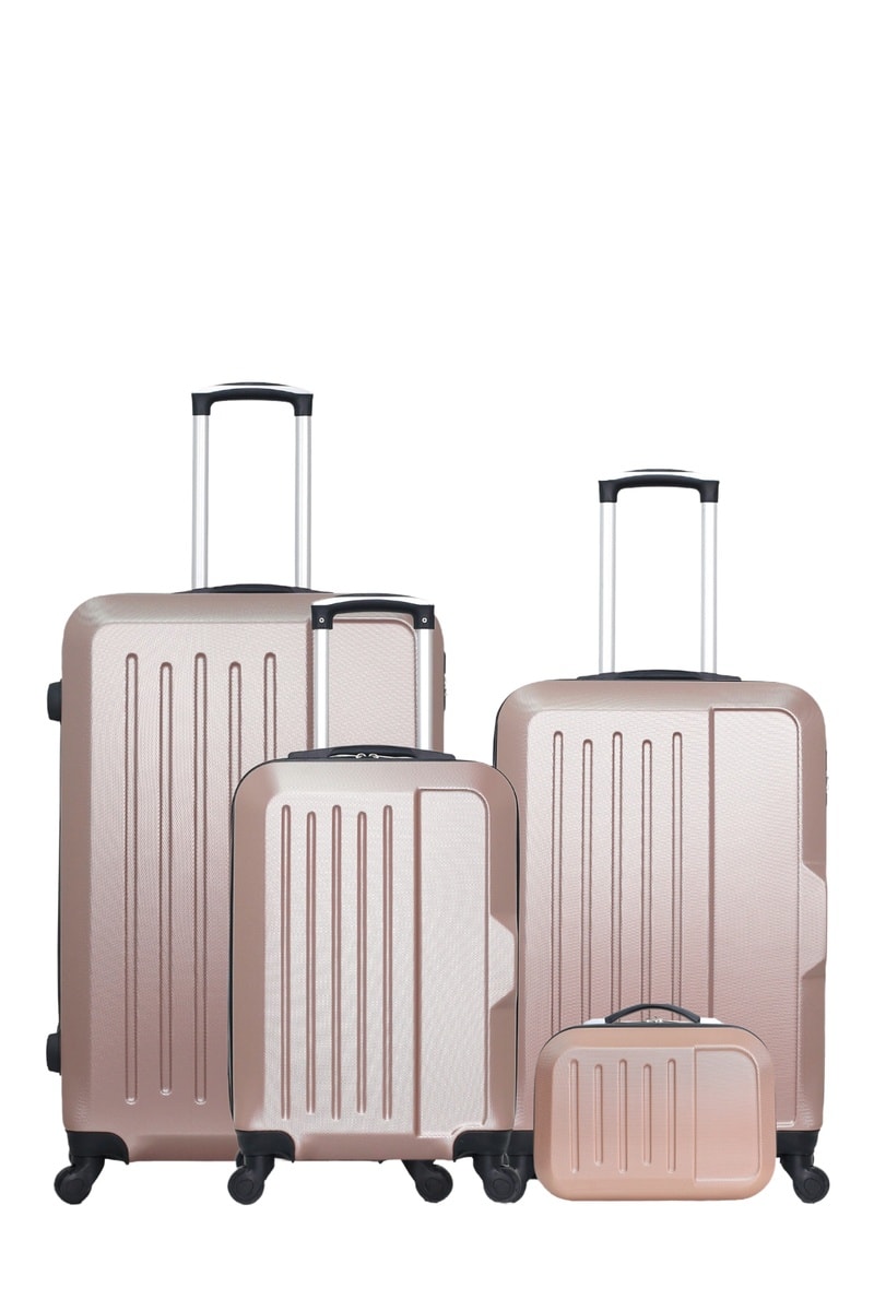 Set 3 valigie e beauty-case Vesuvio (S/M/L/K) - 55/65/75/30 cm - Dorato rosa