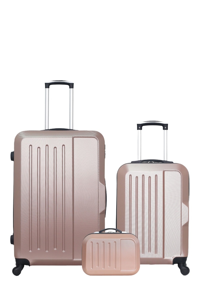 Set 2 valigie e beauty-case Vesuvio (S/L/K) - 55/75/30 cm - Dorato rosa