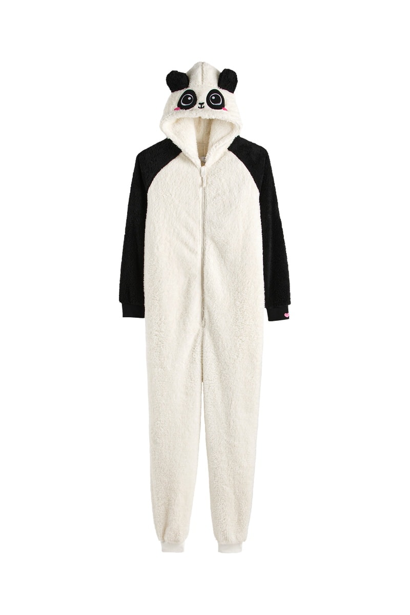 Pigiamino in pile con cappuccio - Ecrù e nero
