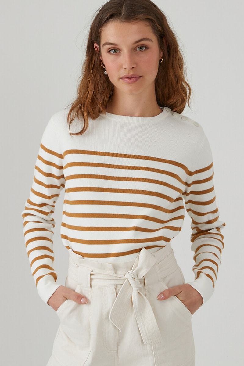 Maglia in cotone bio - Ecrù e marrone