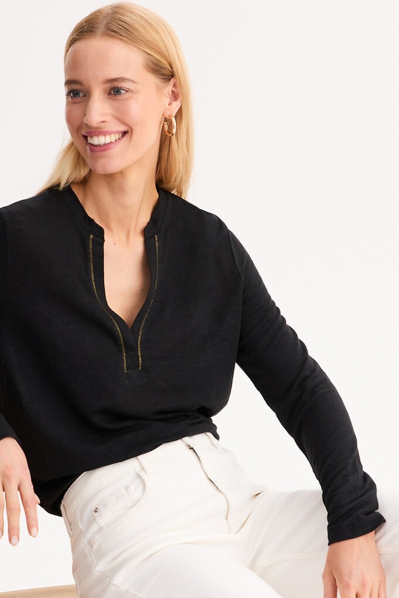 T-shirt in lino - Nero