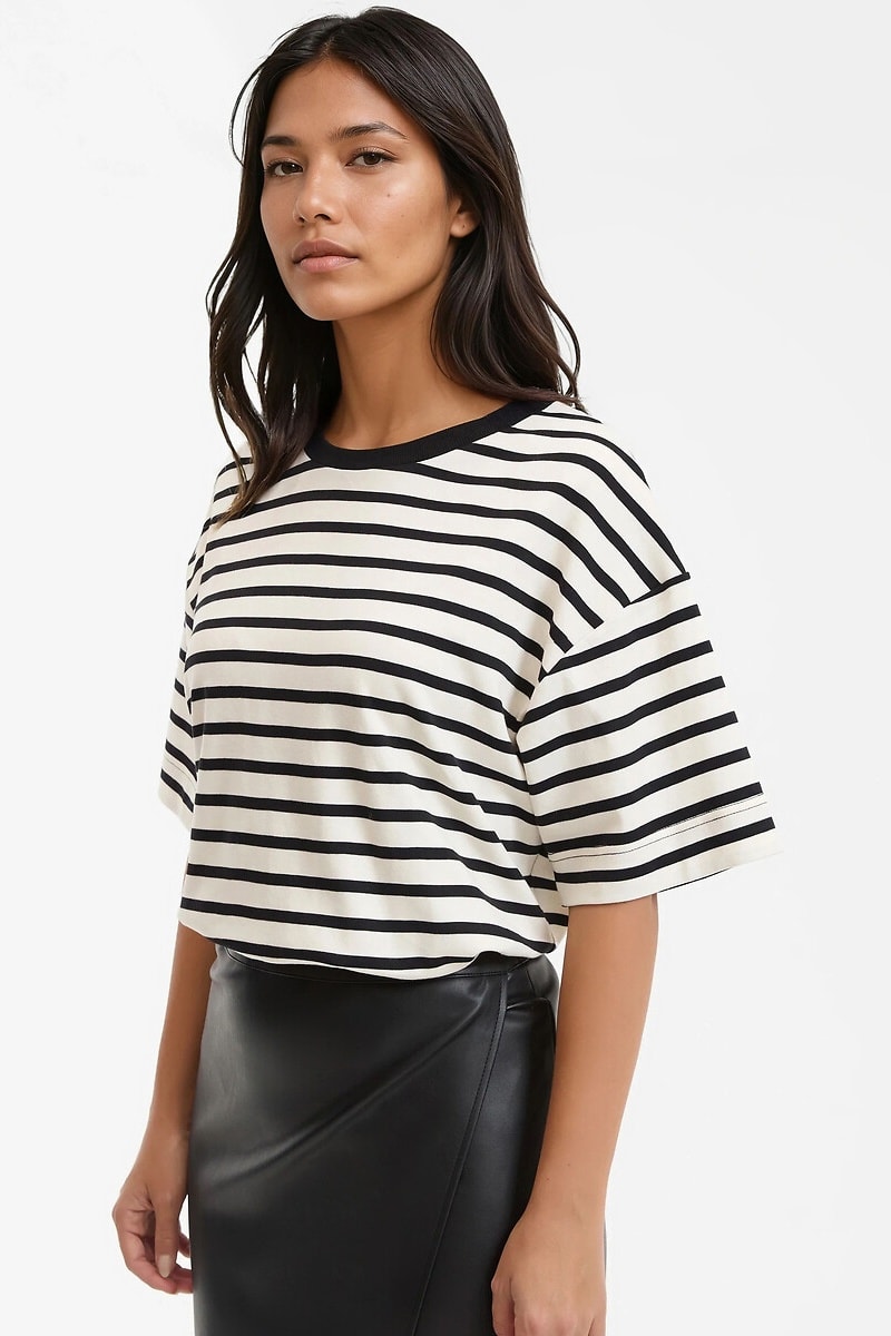 T-shirt loose - Avorio e nero