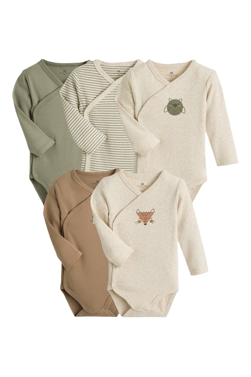 5 body in cotone bio - Ecrù e kaki