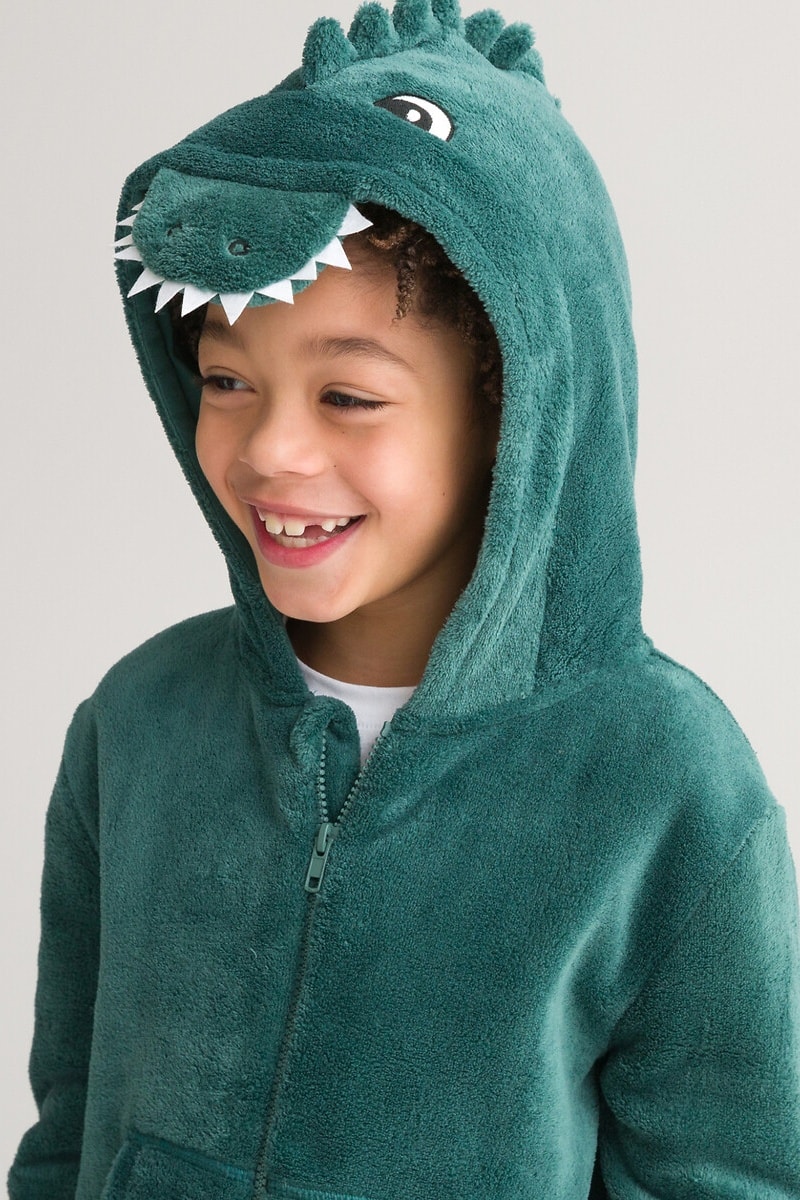 Pigiamino in pile con cappuccio.