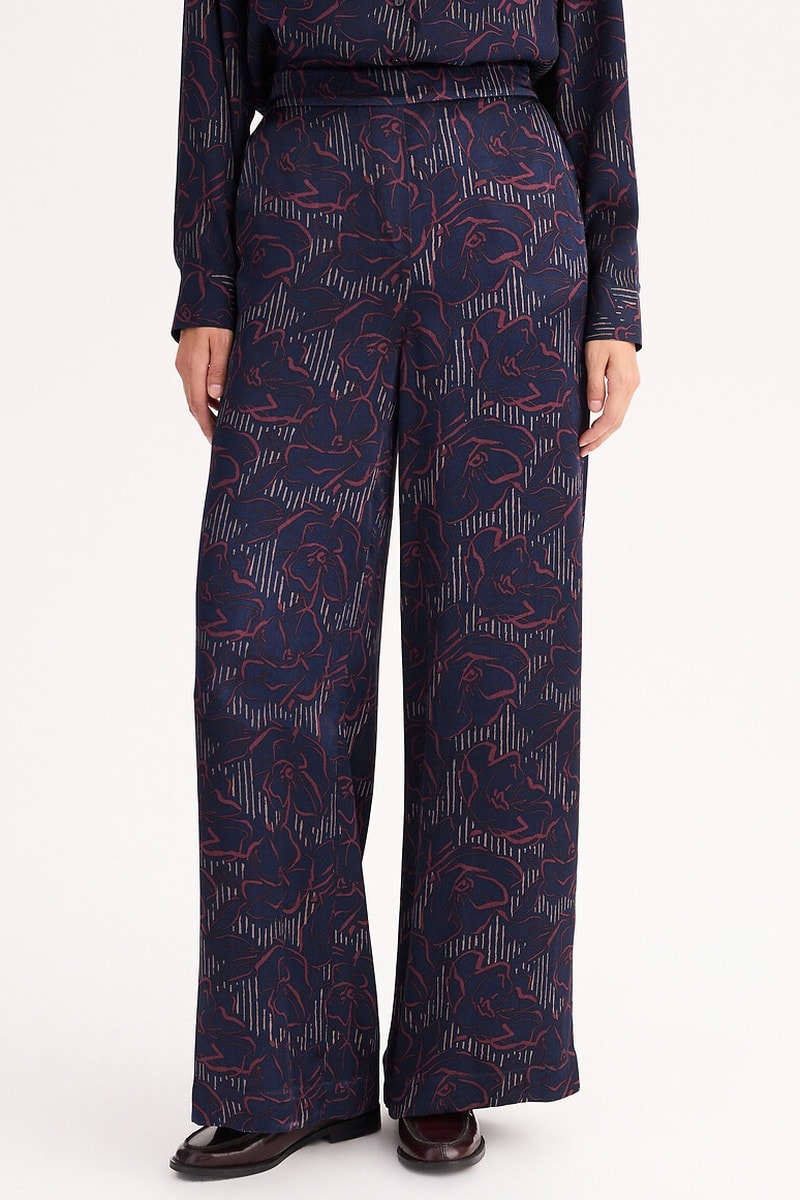 Pantaloni loose a vita alta - Navy e rosso
