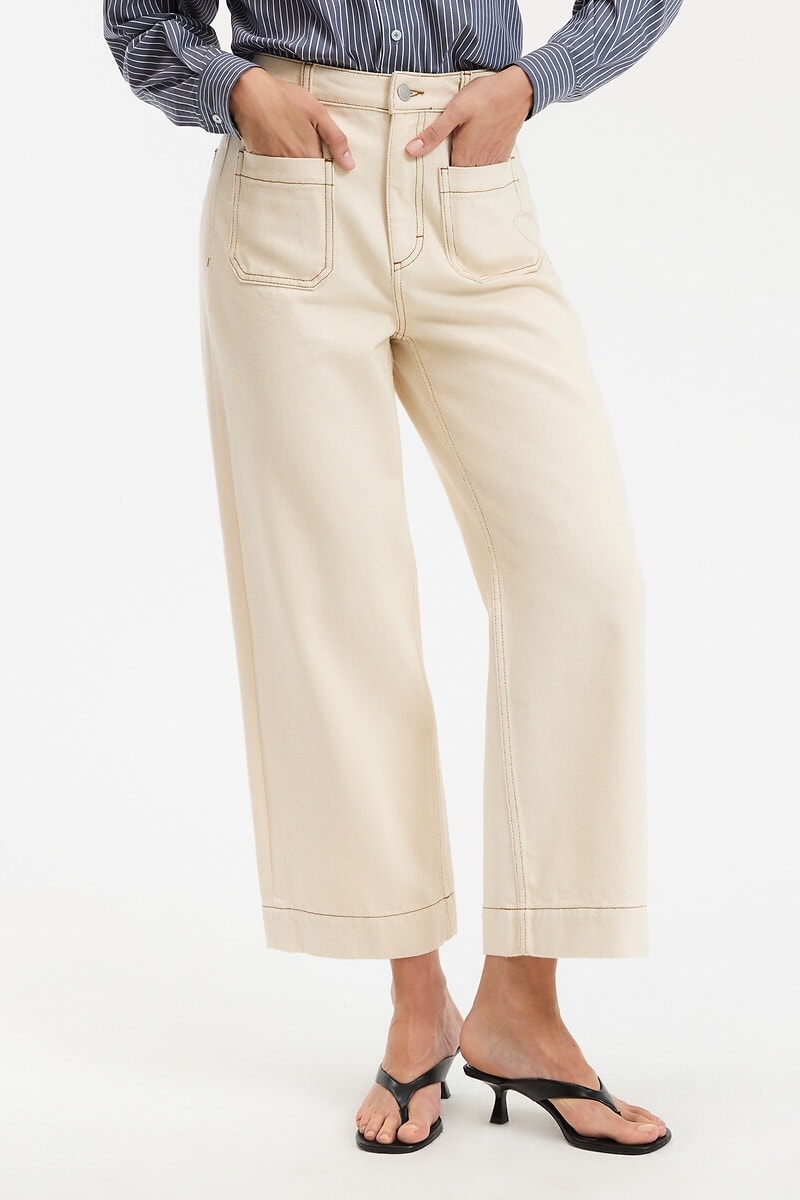 Jeans larghi 7/8 a vita alta in cotone bio - Ecrù