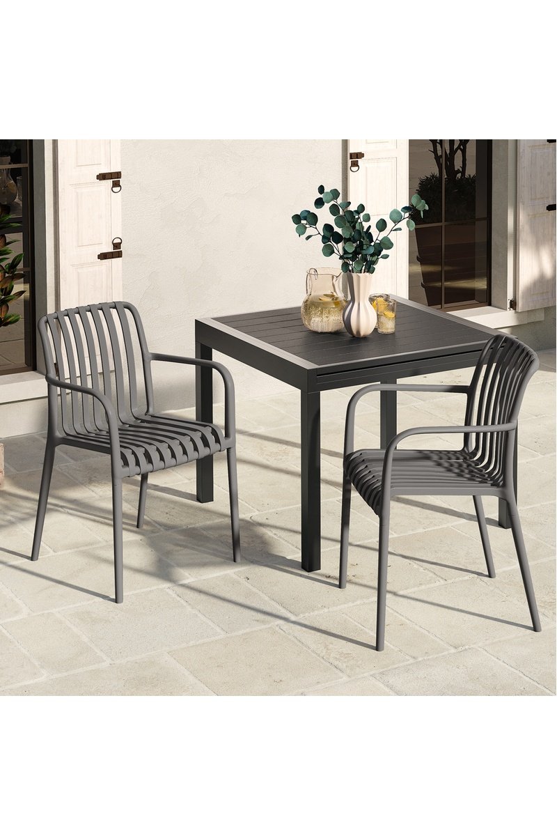 Struttura, seduta, schienale, braccioli in polipropilene.