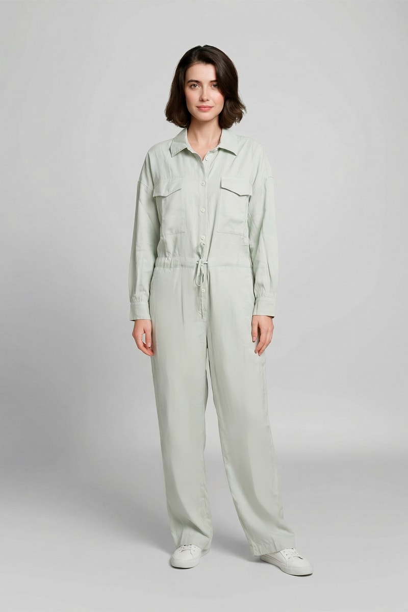 Tuta a maniche lunghe abbottonate.