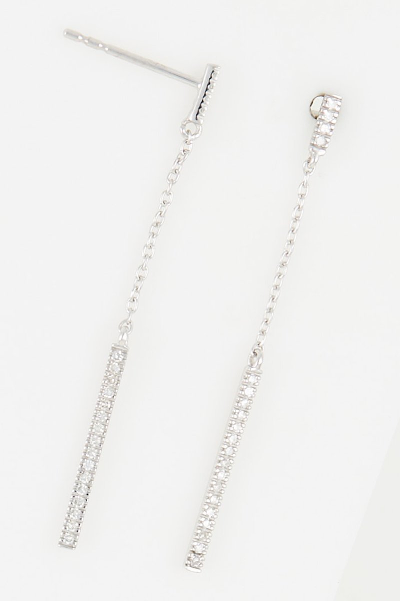 Orecchini pendenti in oro bianco con 20 diamanti.