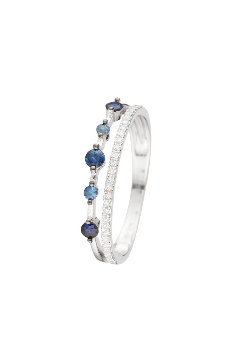 Anello in oro bianco con 31 diamanti e 5 zaffiri.