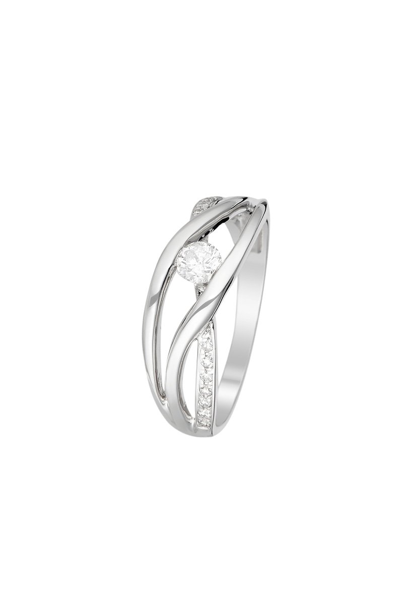 Anello in oro bianco con 15 diamanti di cui un solitario.