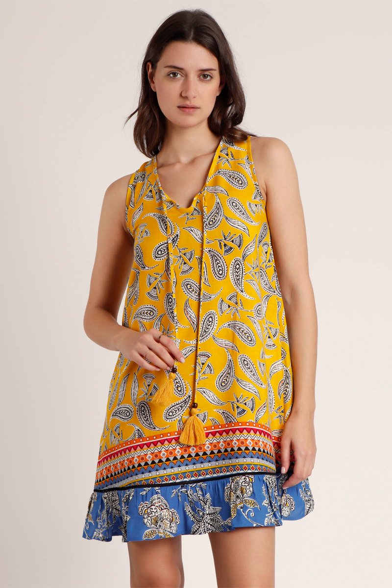 Abito con volant - Giallo e blu