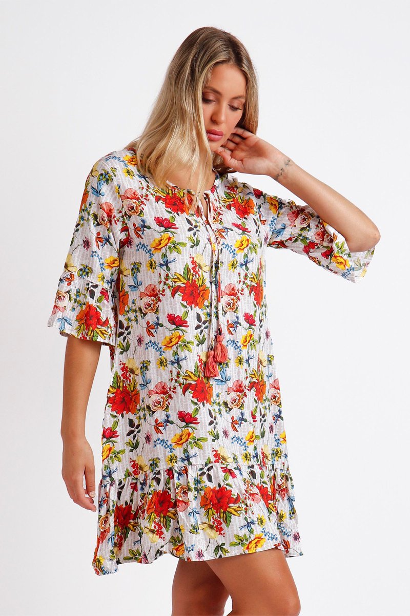 Abito midi - Bianco e rosso
