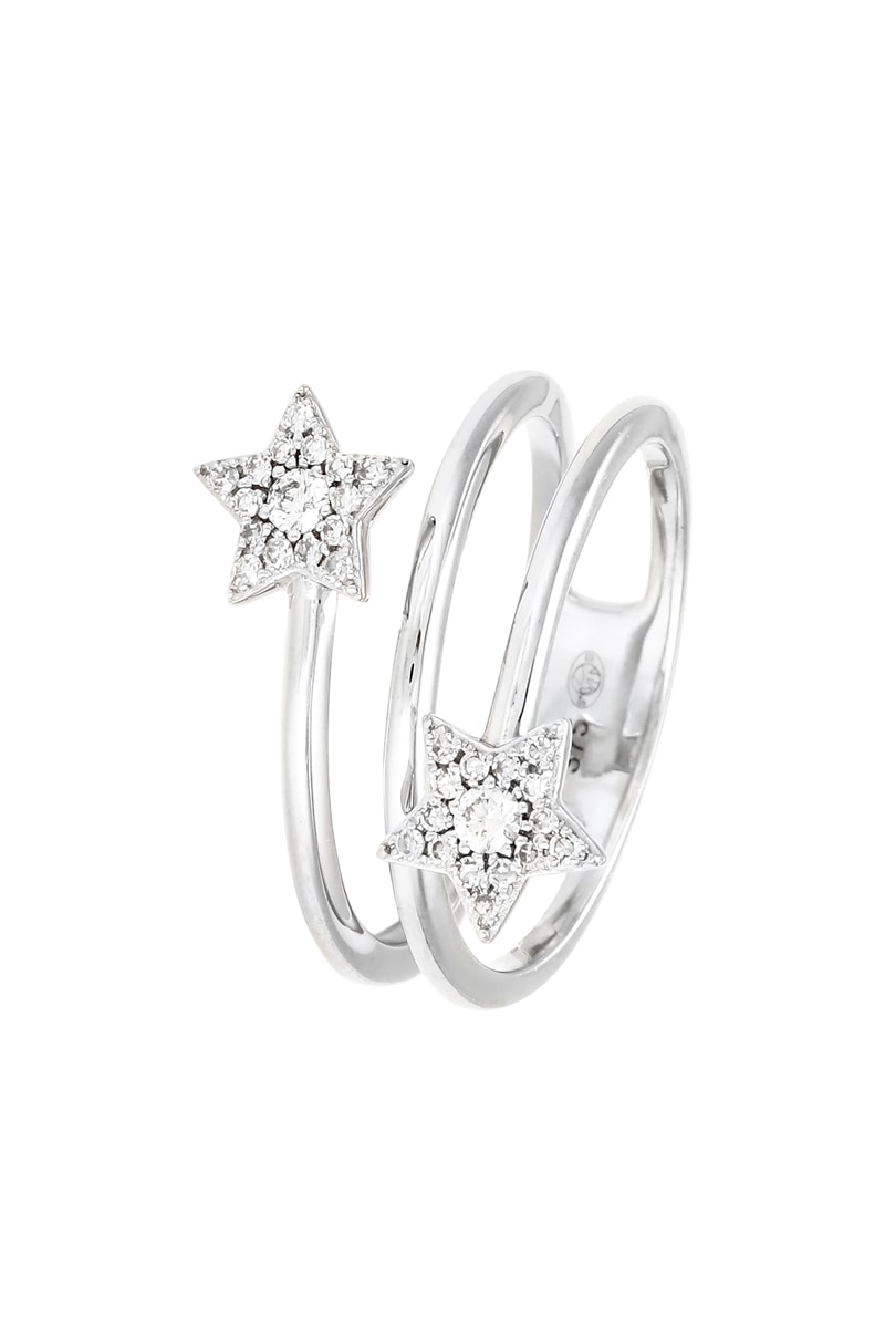 Anello multigiro in oro bianco con 32 diamanti.