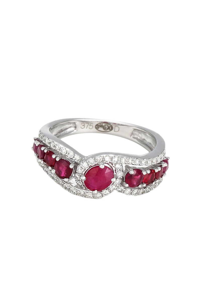 Materiali: oro bianco 375, diamanti 0,26 kt/52 e rubino 0,61 kt/9