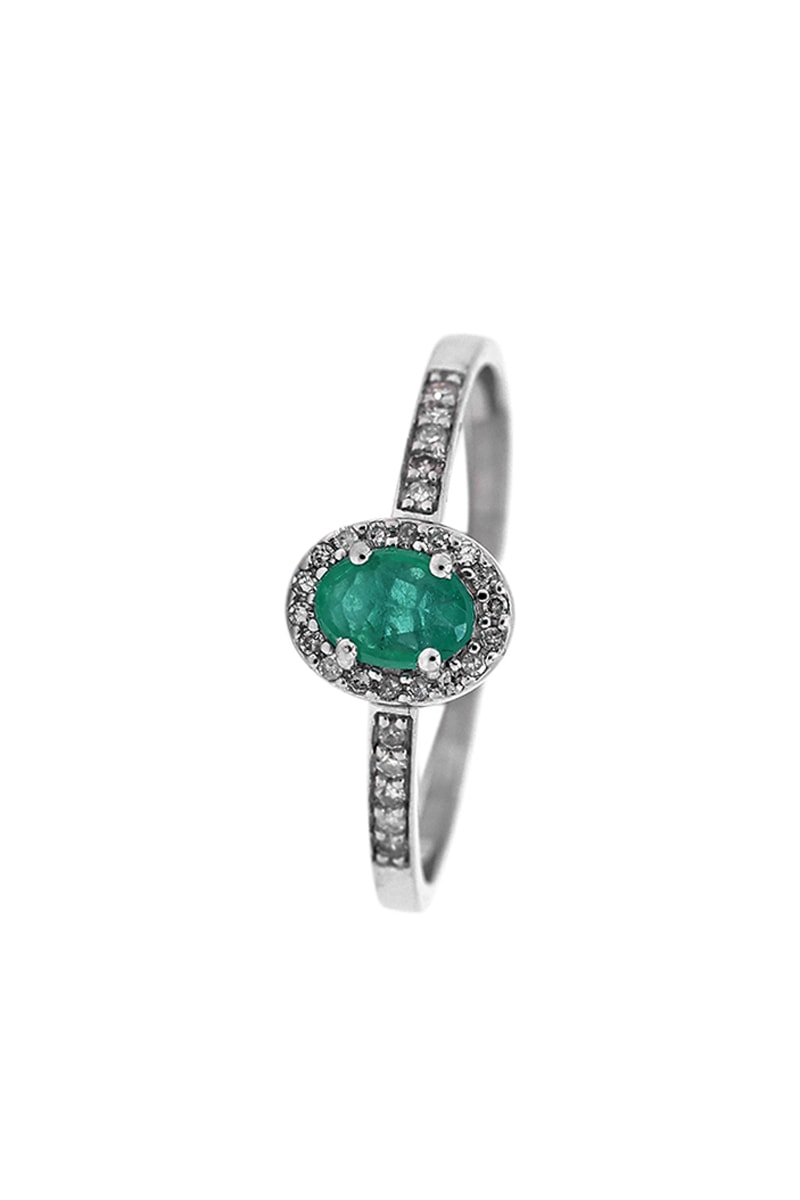 Materiali: oro bianco 375, diamanti 0,13 kt/28 e smeraldo 0,4 kt/1
