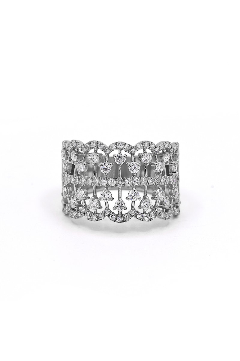 Anello in oro bianco con 101 diamanti.