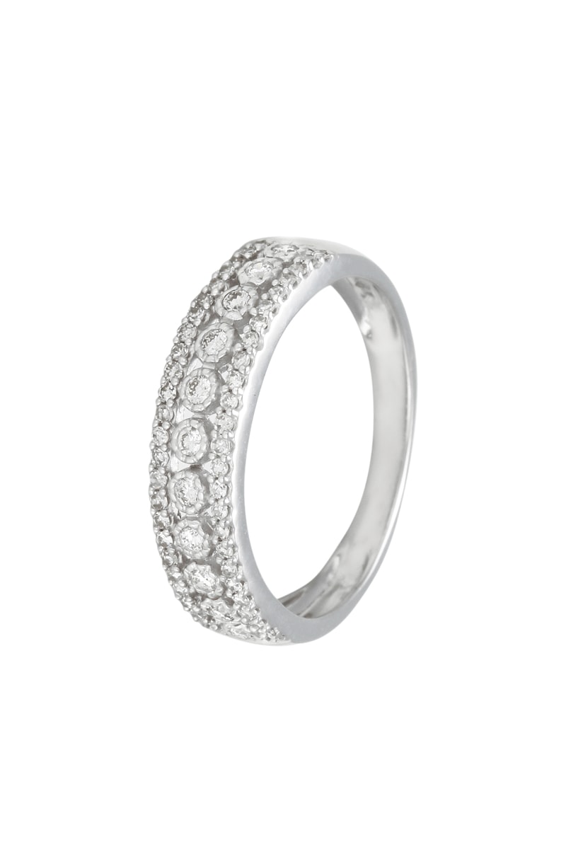 Anello in oro bianco con 61 diamanti.