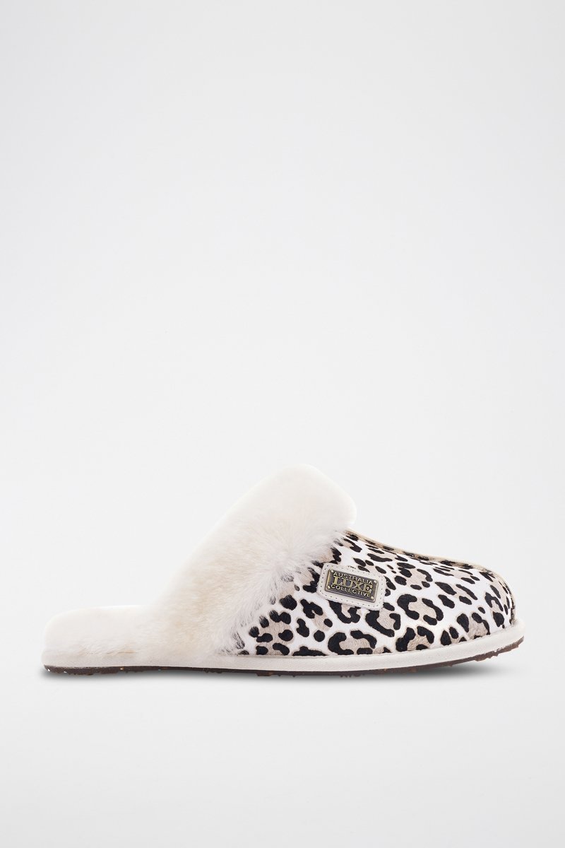 Ciabatte in pelle e lana d’agnello.
