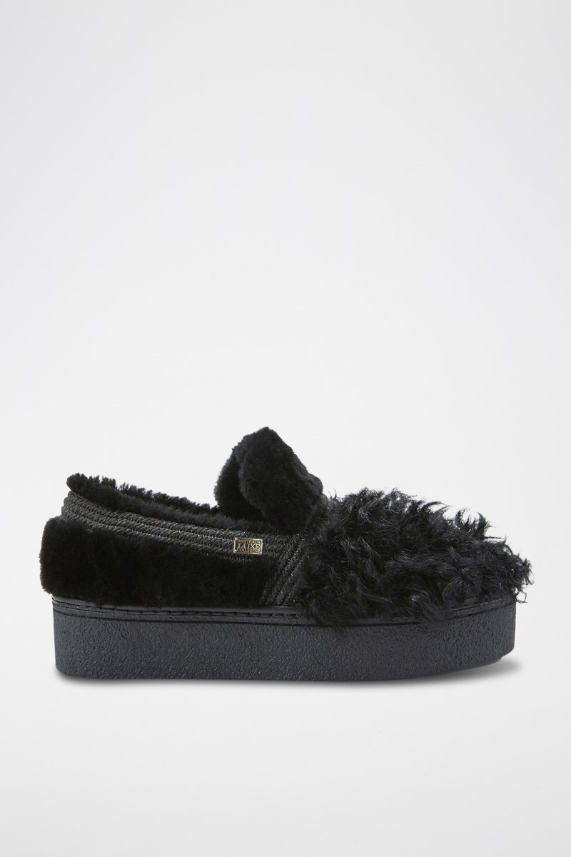 Mocassini platform imbottiti in pelle scamosciata di montone - Nero