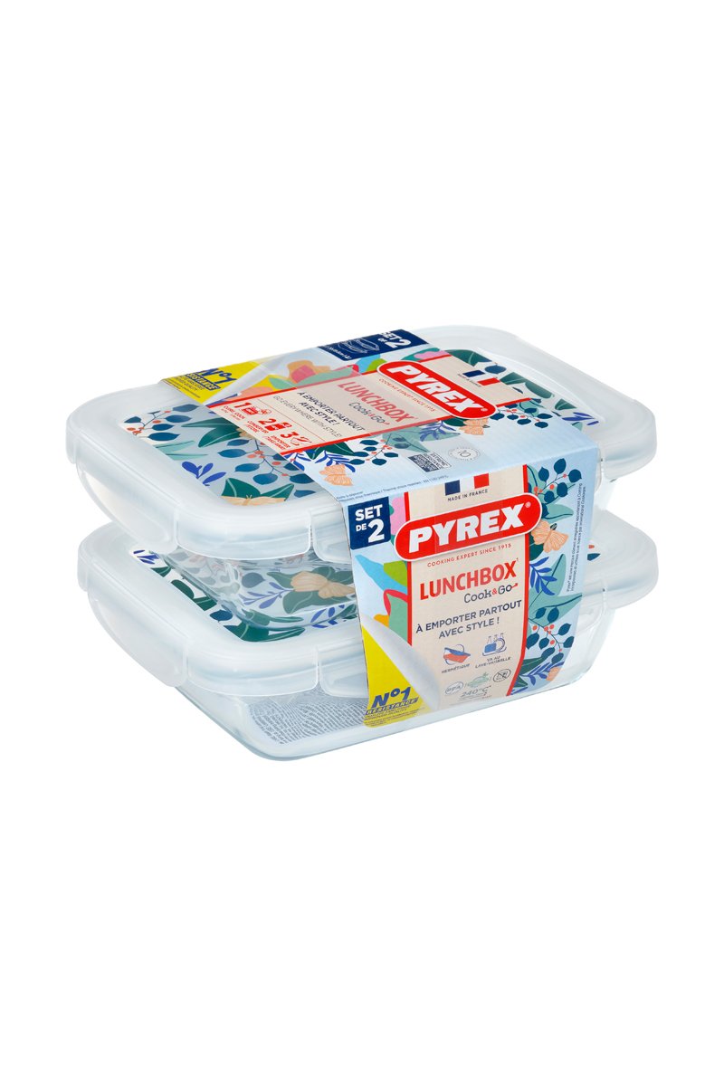 2 lunchbox rettangolari in vetro borosilicato Pyrex® con coperchio Cook & Go - 0,8 l