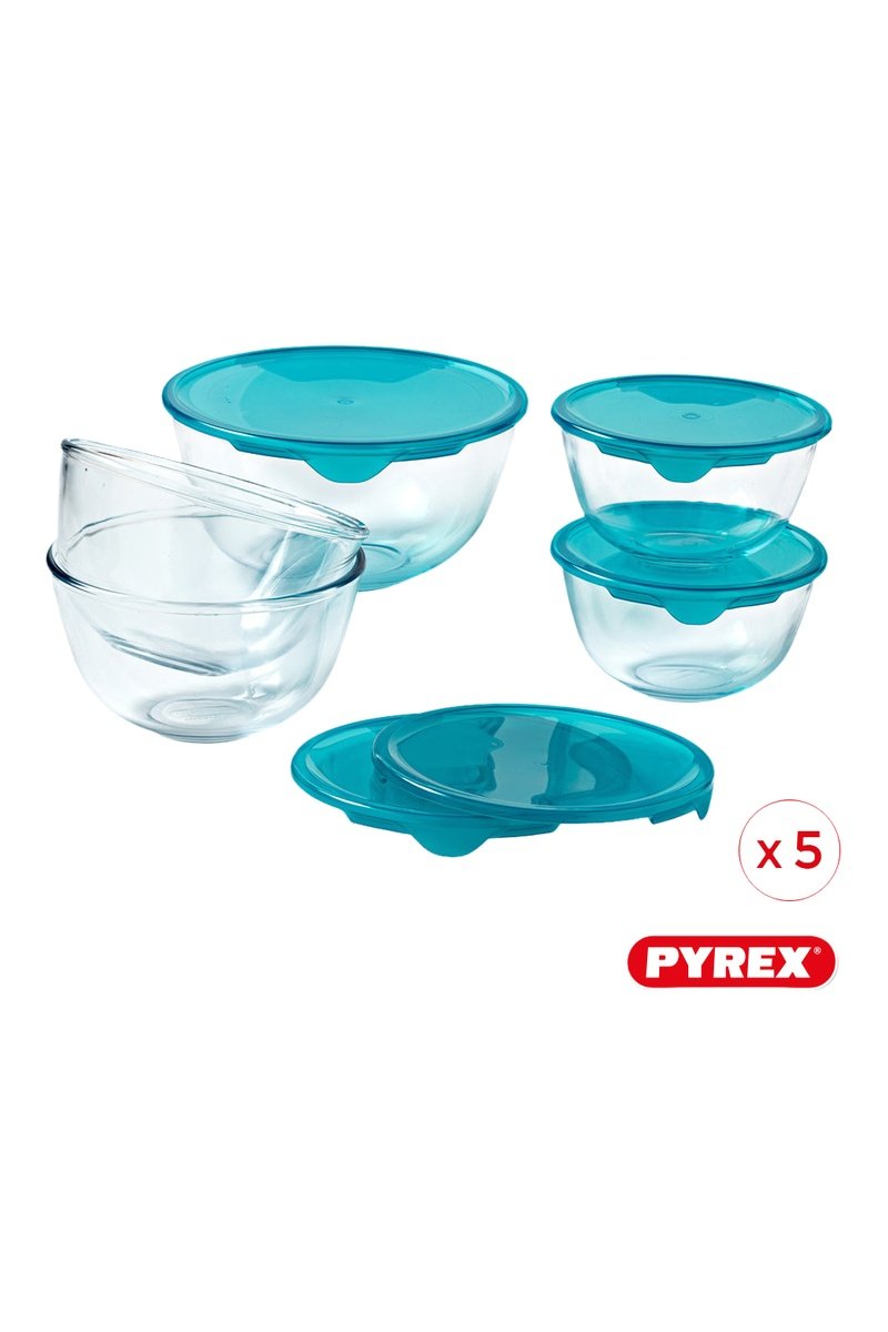 5 ciotole in vetro borosilicato.