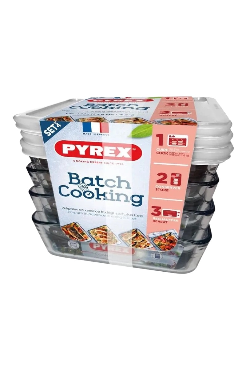 4 contenitori salvafreschezza rettangolari in vetro borosilicato Cook & Freeze Batch Cooking - 4 x 1,5 l